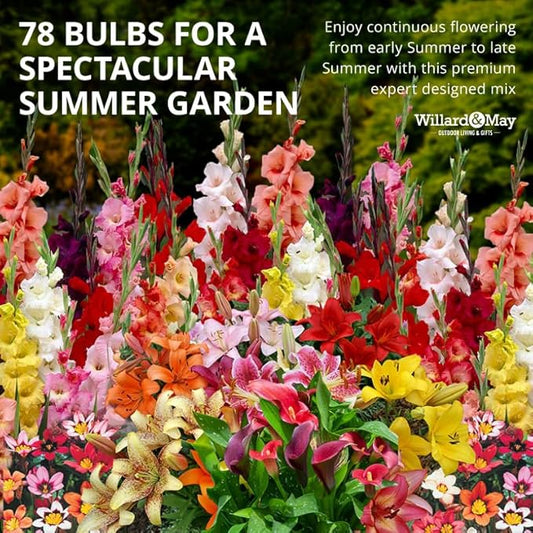 Complete Flower Bulb Garden - 75 Bulbs for 50 Days of Continuous Blooms (Summer Color from July Through October) - Easy to Grow Summer Planting Bulbs by Willard & May