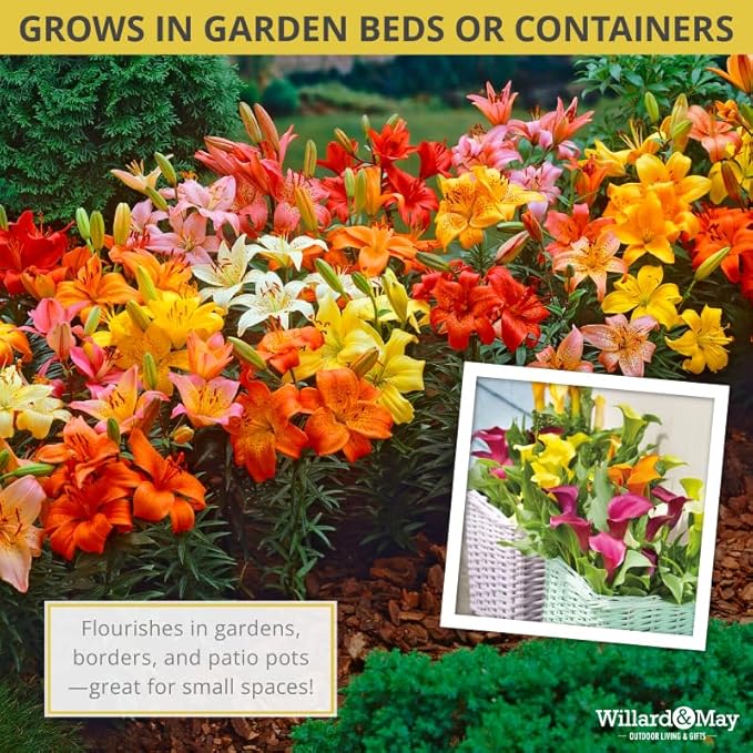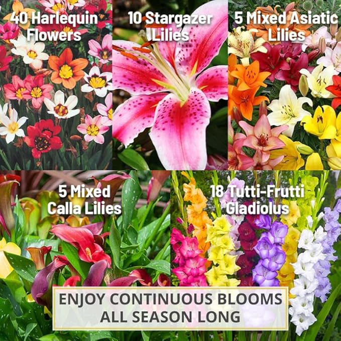 Complete Flower Bulb Garden - 75 Bulbs for 50 Days of Continuous Blooms (Summer Color from July Through October) - Easy to Grow Summer Planting Bulbs by Willard & May