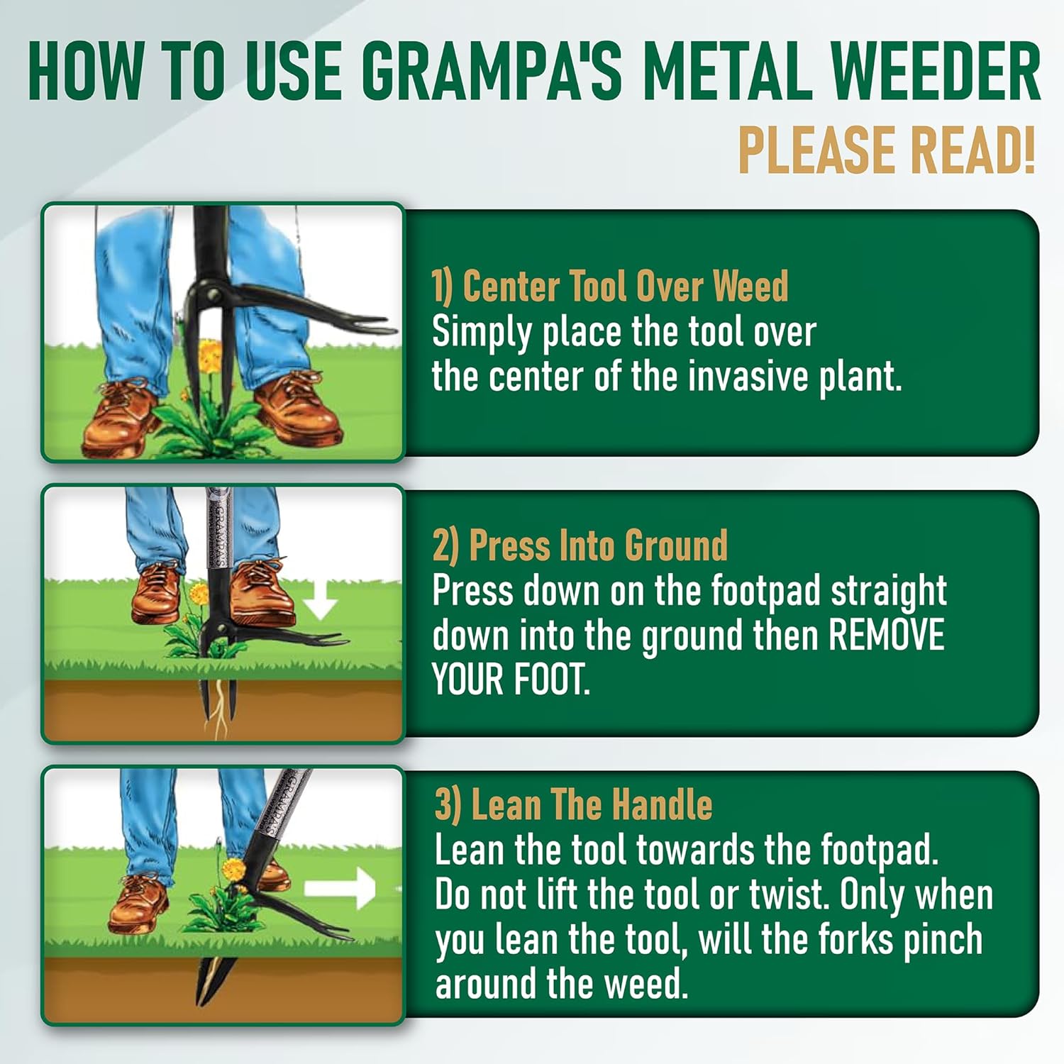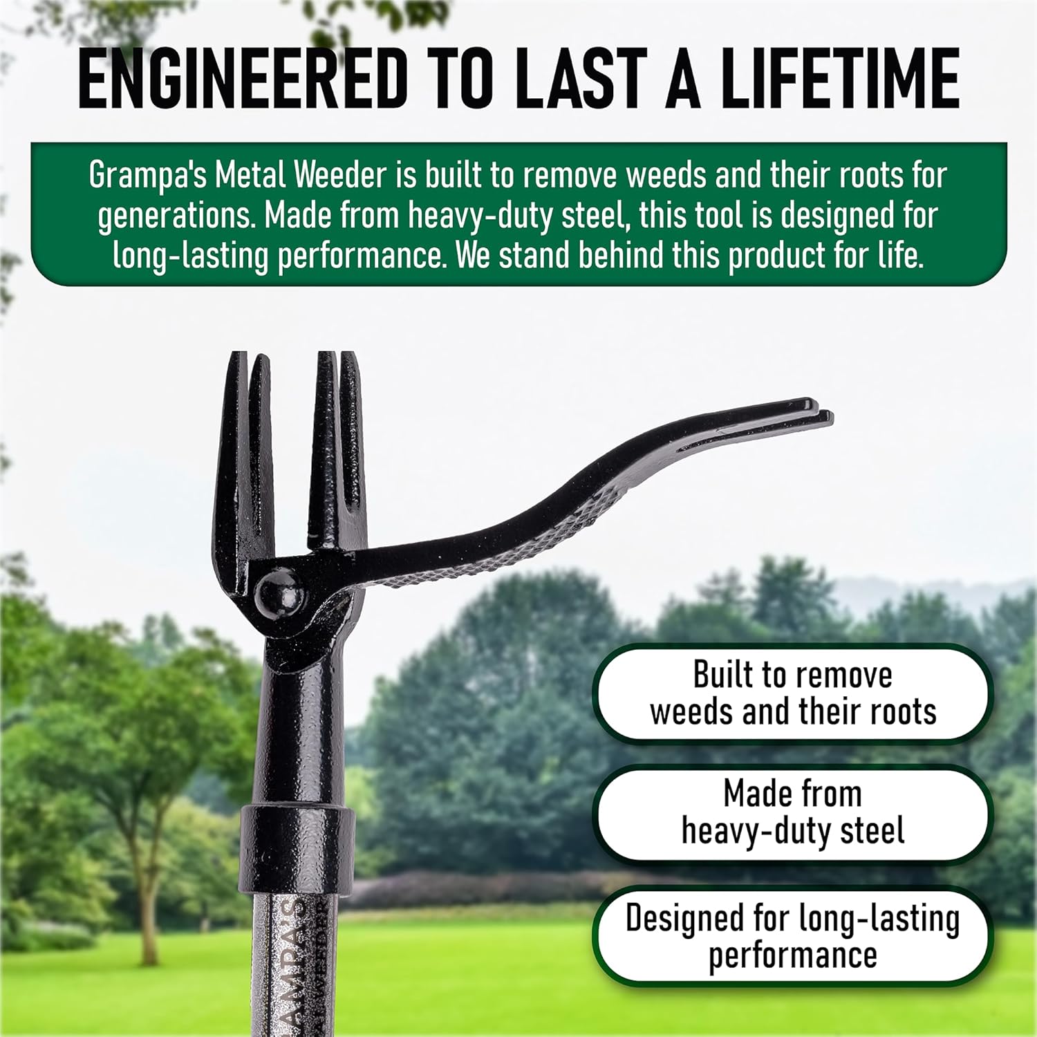 Grampa's Metal Weeder - Stand Up Weed Puller Tool with Steel Long Handle - Made with All Steel Handle & 4-Claw Steel Head - Easily Remove Weeds Without Bending, Pulling, or Kneeling (Black)